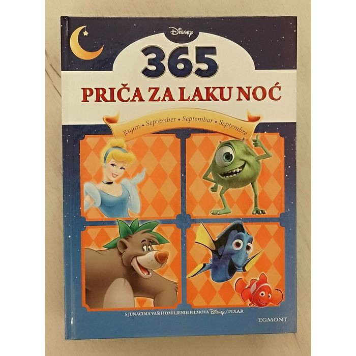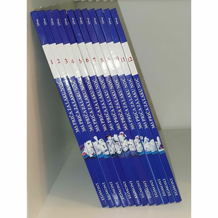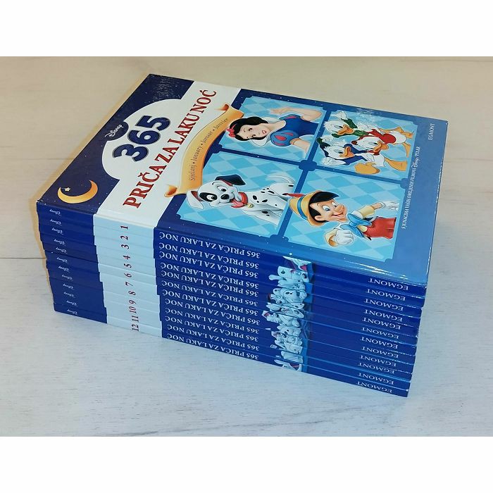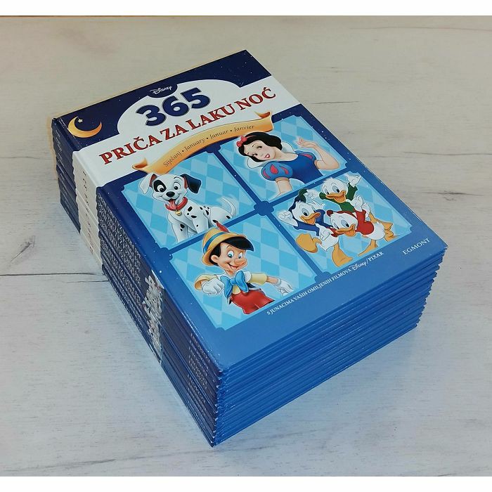Kolekcija Disney-evih knjiga 365 PRIČA ZA LAKU NOĆ se sastoji od dvanaest knjiga nazvanih po mjesecima i donosi priču za svaki dan u godini. Posebno osmišljene za čitanje pred spavanje, ove petominutne priče će Vas zabaviti, poučiti, nasmijati, kao i obilježiti posebne datume u godini.
