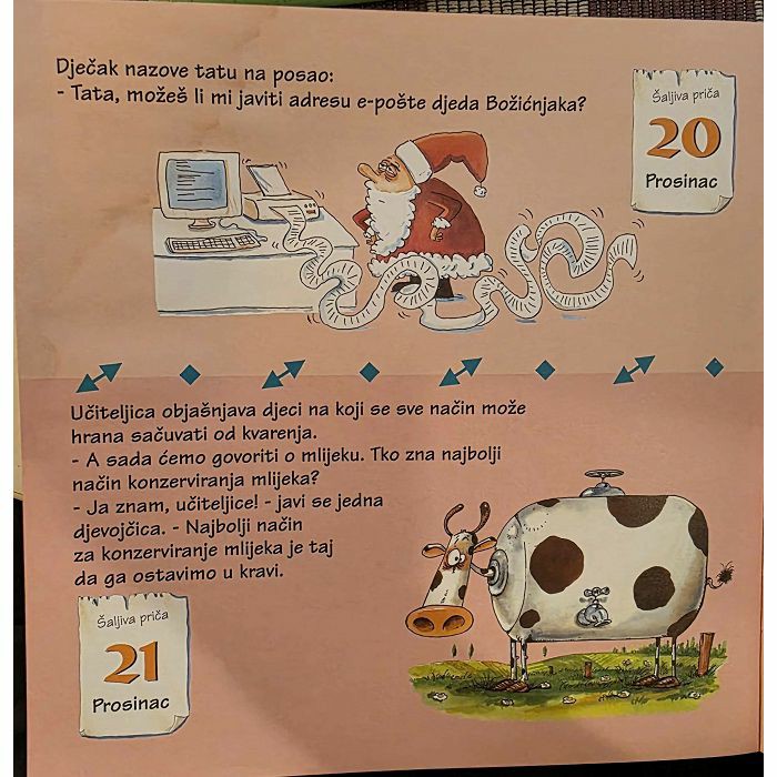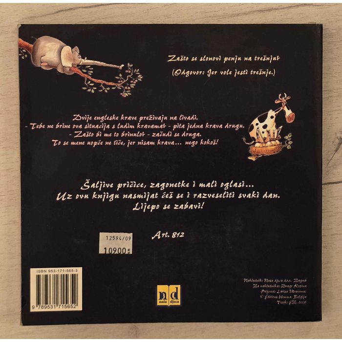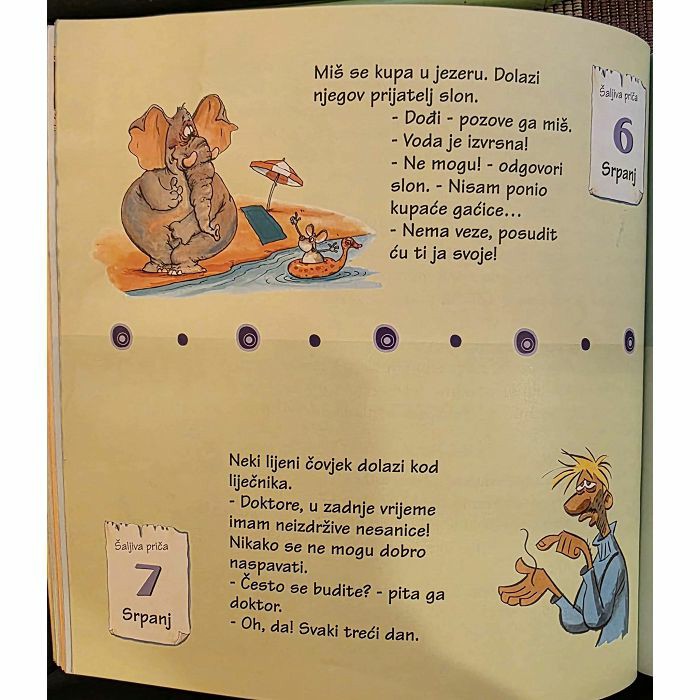 365 šala za djecu od 9 godina na dalje Fabrice Lelarge Šaljive pričice, zagonetke i mali oglasi...Uz ovu knjigu nasmijat ćete se i razveseliti svaki dan!NAPOMENA: NA ZADNJIH PAR LISTOVA BLAGI FLEK NA GLAVI, VIDI SLIKE