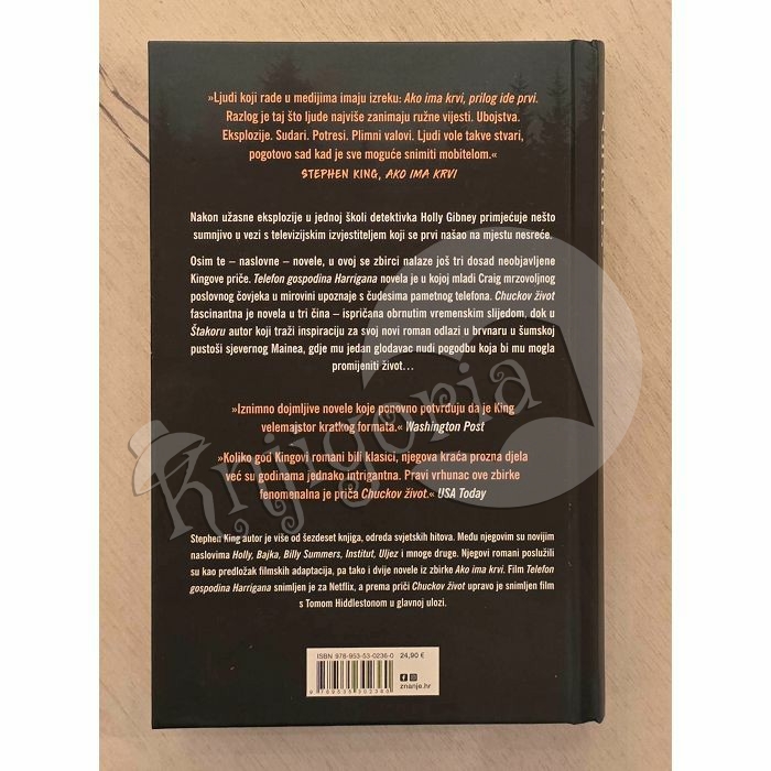 Nakon užasne eksplozije u jednoj školi detektivka Holly Gibney primjećuje nešto sumnjivo u vezi s televizijskim izvjestiteljem koji se prvi našao na mjestu nesreće. Osim te – naslovne – novele, u ovoj se zbirci nalaze još tri dosad neobjavljene Kingove priče. Telefon gospodina Harrigana novela je u kojoj mladi Craig mrzovoljnog poslovnog čovjeka u mirovini upoznaje s čudesima pametnog telefona. Chuckov život fascinantna je novela u tri čina – ispričana obrnutim vremenskim slijedom, dok u Štakoru autor koji traži inspiraciju za svoj novi roman odlazi u brvnaru u šumskoj pustoši sjevernog Mainea, gdje mu jedan glodavac nudi pogodbu koja bi mu mogla promijeniti život…