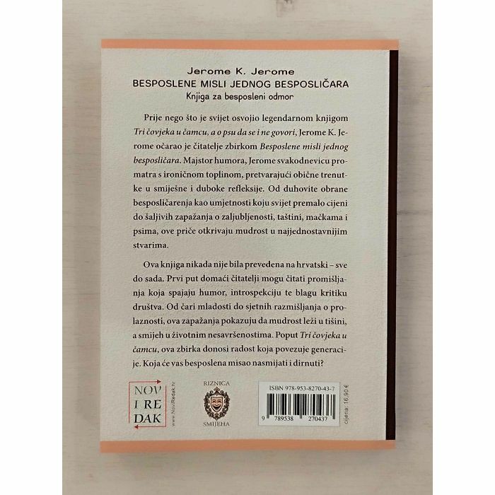 Prije nego što je svijet osvojio legendarnom knjigom "Tri čovjeka u čamcu, a o psu da se i ne govori", Jerome K. Jerome očarao je čitatelje zbirkom "Besposlene misli jednog besposličara". Majstor humora, Jerome svakodnevicu promatra s ironičnom toplinom, pretvarajući obične trenutke u smiješne i duboke refleksije. Od duhovite obrane besposličarenja kao umjetnosti koju svijet premalo cijeni do šaljivih zapažanja o zaljubljenosti, taštini, mačkama i psima, ove priče otkrivaju mudrost u najjednostavnijim stvarima.