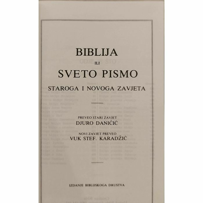 Biblija ili Sveto pismo Staroga i Novoga zavjeta Djuro Daničić, Vuk Stefan Karadžić NAPOMENA: NA PAR MJESTA PODCRTAVANO PO UNUTRAŠNJOSTI