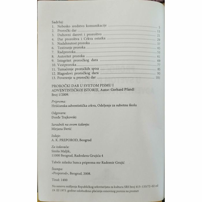 Biblijska doktrina 1 /2009. PROROČKI DAR U SVETOM PISMU I ADVENTISTIČKOJ ISTORIJI Gerhard Pfandl