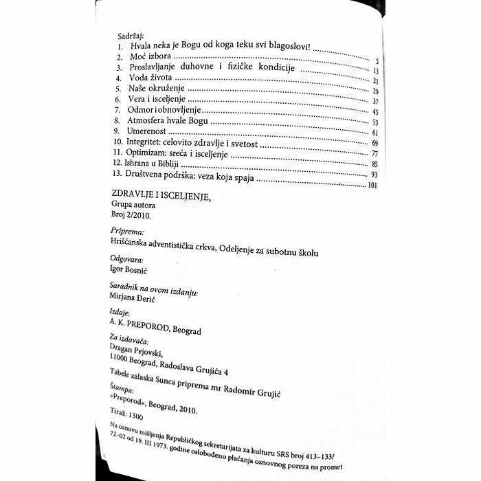 Biblijska doktrina 2/ 2010. Zdravlje i isceljenje