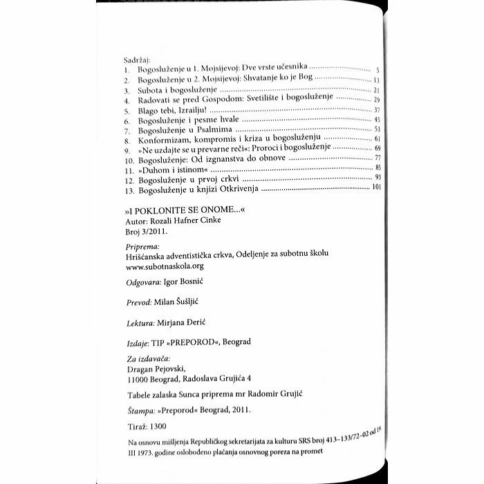 Biblijska doktrina 3/ 2011. I POKLONITE SE ONOME...