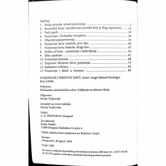Biblijska doktrina 4/02008. Pomirenje i Hristov krst Angel Manuel Rodrigez