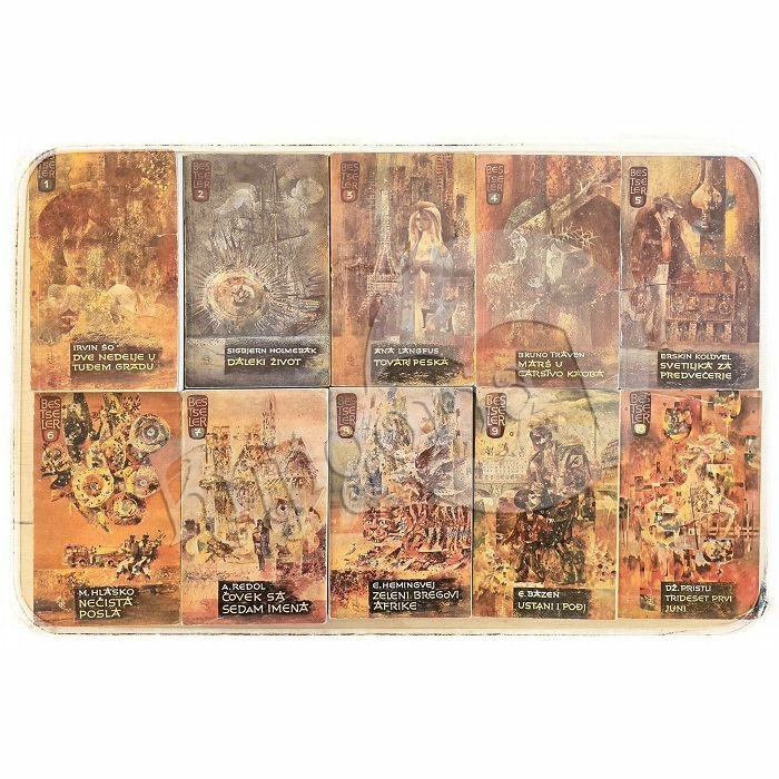 Dve nedelje u fudem gradu - Irvin Šo Daleki život - Sigbjern Holmebak (lošije stanje) Tovari peska - Ana Langfus Marš u carstvo kaoba - Bruno Traven Svetiljka za predvečerje - Erskin Koldvel Nečísta posla - Marek Hlasko Čovek sa sedam imena - Alves Redol Zelení bregovi Afrike - Ernest Hemingvej Ustani i pođi - Erve Bazen Trideset prvi juni - Džon Bojnton Pristli