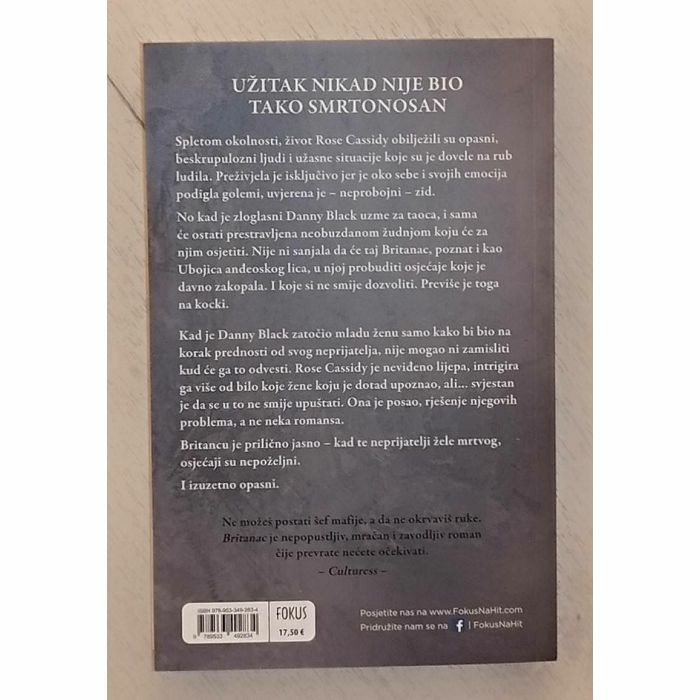 Spletom okolnosti, život Rose Cassidy obilježili su opasni, beskrupulozni ljudi i užasne situacije koje su je dovele na rub ludila. Preživjela je isključivo jer je oko sebe i svojih emocija podigla golemi, uvjerena je – neprobojni – zid. No kad je zloglasni Danny Black uzme za taoca, i sama će ostati prestravljena neobuzdanom žudnjom koju će za njim osjetiti. Nije ni sanjala da će taj Britanac, poznat i kao Ubojica anđeoskog lica, u njoj probuditi osjećaje koje je davno zakopala. I koje si ne smije dozvoliti. Previše je toga na kocki. Kad je Danny Black zatočio mladu ženu samo kako bi bio na korak prednosti od svog neprijatelja, nije mogao ni zamisliti kud će ga to odvesti. Rose Cassidy je neviđeno lijepa, intrigira ga više od bilo koje žene koju je dotad upoznao, ali… svjestan je da se u to ne smije upuštati. Ona je posao, rješenje njegovih problema, a ne neka romansa. Britancu je prilično jasno – kad te neprijatelji žele mrtvog, osjećaji su nepoželjni. I izuzetno opasni.
