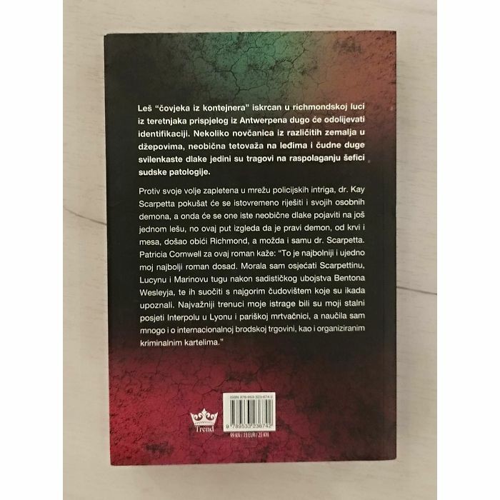 Leš čovjeka iz kontejnera iskrcan u richmondskoj luci iz teretnjaka prispjelog iz Antwerpena dugo će odolijevati identifikaciji. Nekoliko novčanica iz različitih zemalja u džepovima, neobična tetovaža na leđima i čudne duge svilenkaste dlake jedini su tragovi na raspolaganju šefici sudske patologije. Protiv svoje volje zapletena u mrežu policijskih intriga, dr. Kay Scarpetta pokušat će se istovremeno riješiti i svojih osobnih demona, a onda će se one iste neobične dlake pojaviti na još jednom lešu, no ovaj put izgleda da je pravi demon, od krvi i mesa, došao obići Richmond, a možda i samu dr. Scarpetta. Patricia Cornwell za ovaj roman kaže: To je najbolniji i ujedno moj najbolji roman dosad. Morala sam osjećati Scarpettinu, Lucynu i Marinovu tugu nakon sadističkog ubojstva Bentona Wesleyja, te ih suočiti s najgorim čudovištem koje su ikada upoznali. Najvažniji trenuci moje istrage bili su moji stalni posjeti Interpolu u Lyonu i pariškoj mrtvačnici, a naučila sam mnogo i o internacionalnoj brodskoj trgovini, kao i organiziranim kriminalnim kartelima.