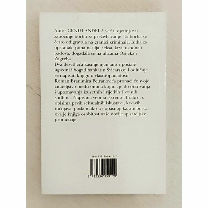 Autor CRNIH ANĐELA već u djetinjstvu započinje borbu za preživljavanje. Ta borba se često odigravala na granici kriminala. Bitka za opstanak, puna nasilja, seksa, krvi, uspona i padova, događala se na ulicama Osijeka i Zagreba. Dva desetljeća kasnije njen autor postaje ugledni i bogati bankar u Švicarskoj i odlučuje se napisati knjigu o vlastitoj mladosti. Roman Branimira Petranovića pronaći će svoje čitateljstvo među onima kojima je do otkrivanja i upoznavanja izuzetnih i rijetkih životnih sudbina. Napisana veoma iskreno i hrabro, s opisima prvih seksualnih iskustava, krvavih tučnjava, posla makroa i opasnog karate borca, ova je knjiga osobitost naše novije spisateljske produkcije.