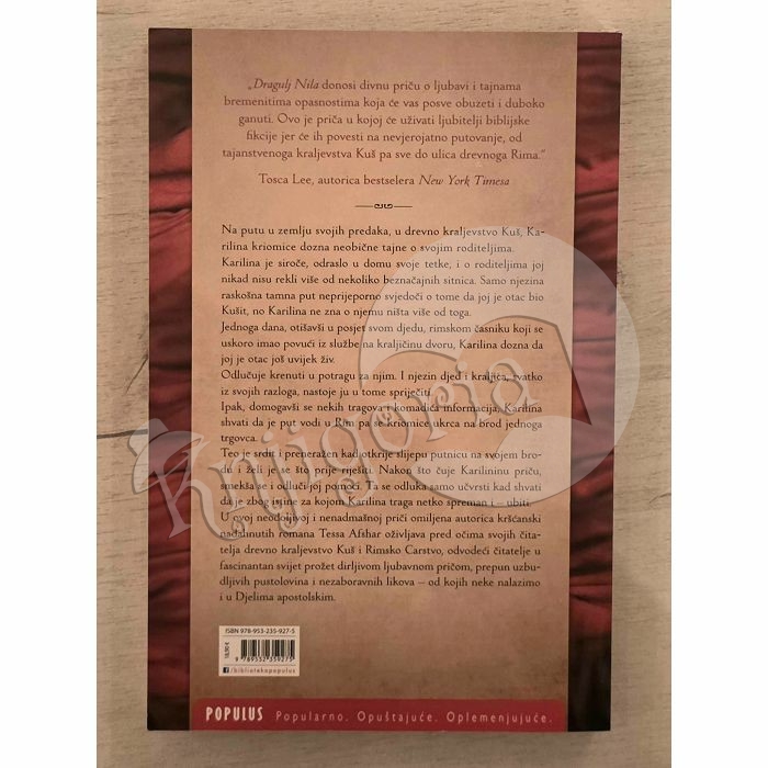 U ovoj neodoljivoj i nenadmašnoj priči omiljena autorica kršćanski nadahnutih romana Tessa Afshar oživljava pred očima svojih čitatelja drevno kraljevstvo Kuš i Rimsko Carstvo, odvodeći čitatelje u fascinantan svijet prožet dirljivom ljubavnom pričom, prepun uzbudljivih pustolovina i nezaboravnih likova – od kojih neke nalazimo i u Djelima apostolskim.