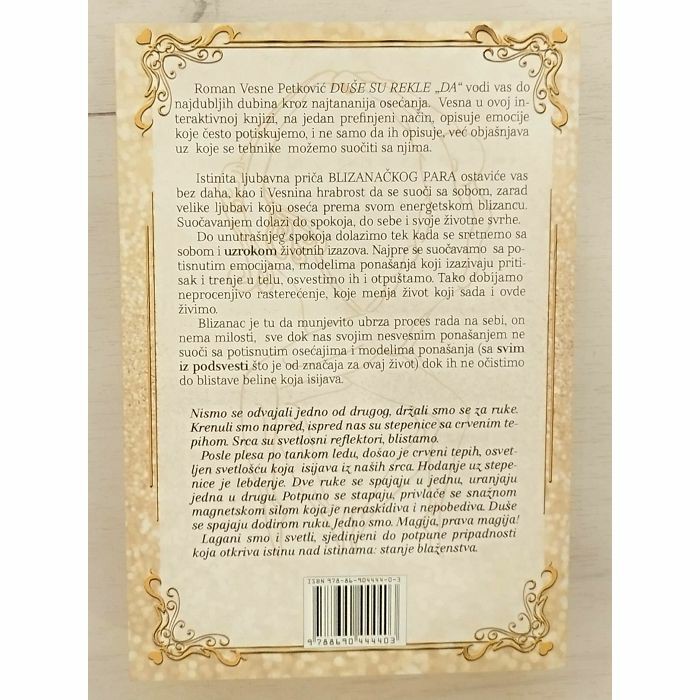 Roman Vesne Petković Duše su rekle „Da“ vodi vas do najdubljih dubina kroz najtananija osećanja. Vesna u ovoj interaktivnoj knjizi, na jedan prefinjeni način, opisuje emocije koje često potiskujemo, i ne samo da ih opisuje, već objašnjava uz koje se tehnike možemo suočiti sa njima.