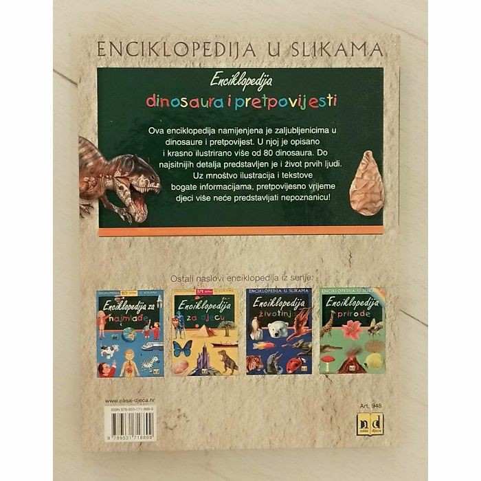 Ova enciklopedija namijenjena je zaljubljenicima u dinosaure i pretpovijest. U njoj je opisano i krasno ilustrirano više od 80 dinosaura. Do najsitnijih detalja predstavljen je i život prvih ljudi.
