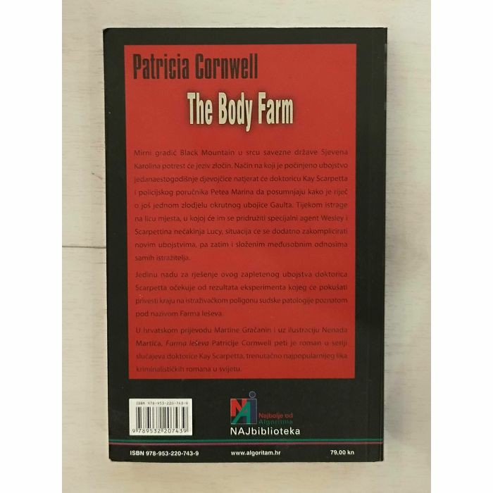 Farma leševa Patricije Cornwell peti je roman u seriji slučajeva dr. Kay Scarpetta, trenutačno najpopularnijeg lika kriminalističkih romana u svijetu.