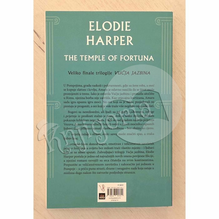 Veliko finale trilogije VUČJA JAZBINA U Pompejima, gradu raskoši i pokvarenosti, gdje su žene roba, a moć se kupuje zlatom i krvlju, Amara je odavno naučila da se život može promijeniti u trenu. Iako je ostavila Vučju jazbinu i pronašla utočište u Rimu, njezina borba nije završila. Kao utjecajna kurtizana, Amara sada igra opasnu igru moći. No oni koji su je nekoć posjedovali ne prestaju je progoniti, a oni koji je vole traže više nego što ona može dati. Bogovi su nemilosrdni, ali ljudi su još gori. Ljubomora, intrige i prijetnje iz prošlosti stalno je prate, dok se teško stečena sloboda pokazuje krhkijom nego ikada. I dok se nad gradom nadvija prijetnja Vezuva, Amara mora odlučiti hoće li ostati u mreži moćnika i opasnih ljubavi ili će prkosno ispisati vlastitu sudbinu – bez obzira na cijenu. U svijetu izdaje i strasti, svaki savez može značiti spas, a svaka ljubav kraj. Fortunin hram donosi napet, emotivan i veličanstven završetak priče o ženi koja u svijetu bez milosti traži vlastito mjesto – i ljubavi koja se ne može sputati. Zahvaljujući trilogiji Vučja jazbina, Elodie Harper postala je jedno od najvažnijih novih imena povijesne fikcije, a njezini romani osvojili su srca čitatelja na svim kontinentima. Prepustite se veličanstvenom završetku i zakoračite još jednom u Pompeje – u priču punu strasti, drame i neugasive nade koja ostaje u mislima dugo nakon što zatvorite posljednju stranicu.
