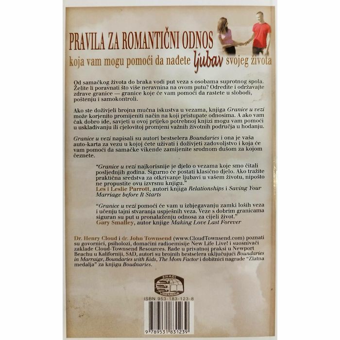 Ako ste doživjeli brojna mučna iskustva u vezama, knjiga „Granice u vezi“ može korjenito promijeniti način na koji pristupate odnosima. Pomoći će vam u izbjegavanju zamki loših veza i učenju tajni stvaranja uspješnih veza s dobrim granicama koje su siguran put u pronalaženju odnosa za cijeli život. A ako vam čak ide dobro, savjeti iz ove knjige mogu vam pomoći u usklađivanju ili cjelovitoj promjeni važnih životnih područja u hodanju.