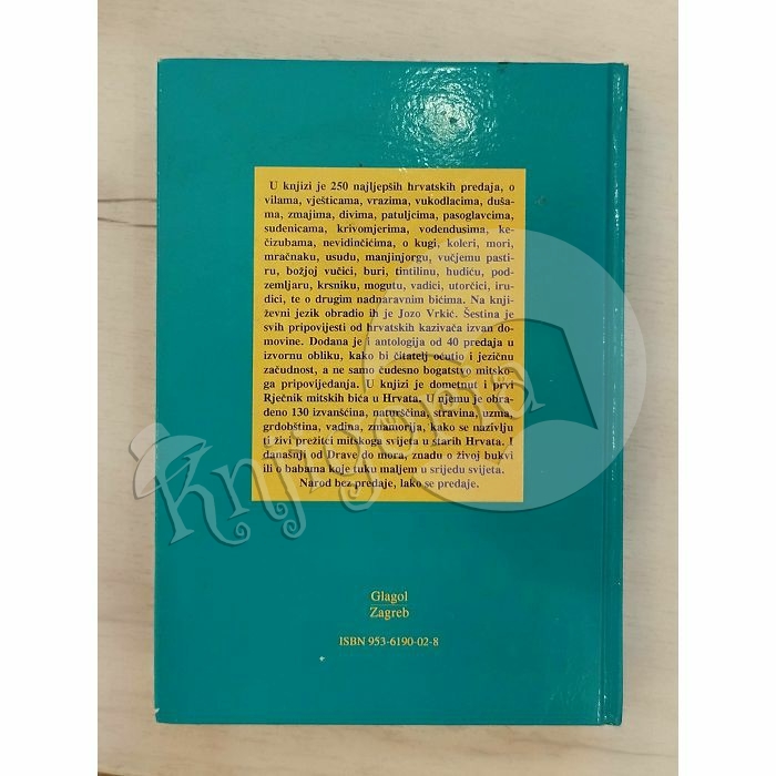 U knjizi je 250 najljepših hrvatskih predaja, o vilama, vješticama, vrazima, vukodlacima, duša-ma, zmajima, divima, patuljcima, pasoglavcima, sudenicama, krivomjerima, vodendusima, ke-čizubama, nevidinčićima, o kugi, koleri, mori, mračnaku, usudu, manjinjorgu, vučjemu pasti-ru, božjoj vučici, buri, tintilinu, hudiću, pod-zemljaru, krsniku, mogutu, vadici, utorčici, iru-dici, te o drugim nadnaravnim bićima. Na knji-ževni jezik obradio ih je Jozo Vrkić. Šestina je svih pripovijesti od hrvatskih kazivača izvan do-movine. Dodana je i antologija od 40 predaja u izvornu obliku, kako bi čitatelj oćutio i jezičnu začudnost, a ne samo čudesno bogatstvo mitsko-ga pripovijedanja. U knjizi je dometnut i prvi Rječnik mitskih bića u Hrvata. U njemu je obra-deno 130 izvanščina, naturščina, stravina, uzma, grdobština, vadina, zmamorija, kako se nazivlju tí živi prežitci mitskoga svijeta u starih Hrvata. I današnji od Drave do mora, znadu o živoj bukvi ili o babama koje tuku maljem u srijedu svijeta. Narod bez predaje, lako se predaje.