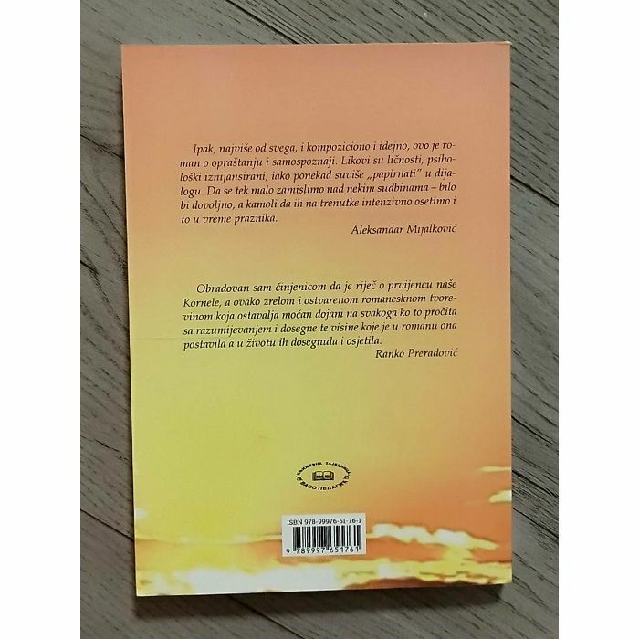 Nošena životnim iskustvom ova knjiga nastala je u trenucima kada su se preplitali osjećaji tuge, ponosa i pomalo sreće. Kada su se vraćale slike djetinjstva i svih radosti odrastanja, ali i analize likova uz koje sam odrastala. Ne zamjerite što radnje koje prate slijed događaja nemaju imena gradova i prezimena likova. Ovo je moj prvi roman, pisan u dahu, a Vama ostavljam da vas mašta odvede do mjesta koja su samo vama znana. –Kornela