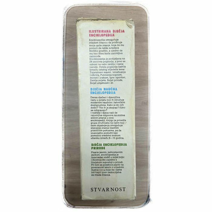ILUSTRIRANA DJEČJA ENCIKLOPEDIJA Enciklopedija omogućuje mladom čitaocu da proširuje svoje opće znanje, koje će mu pomoći da lakše svladava školsko gradivo, a ujedno da mu kao štivo bude zanimljiva razonoda. Enciklopedija je podijeljena na 24 osnovna poglavlja, a prvo se odnosi na našu zemlju i njene narode. Ostala poglavlja sadrže između ostalog slijedeće teme: Tajanstveni svemir, Istraživanja i otkrića, Putovanja kopnom, morem i zrakom, Igre i sportovi, Zemlje svijeta, Svijet prirode, Svijet umjetnosti i dr.