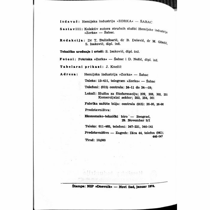 | Izdavač | Hemijska industrija ZORKA ŠABAC |