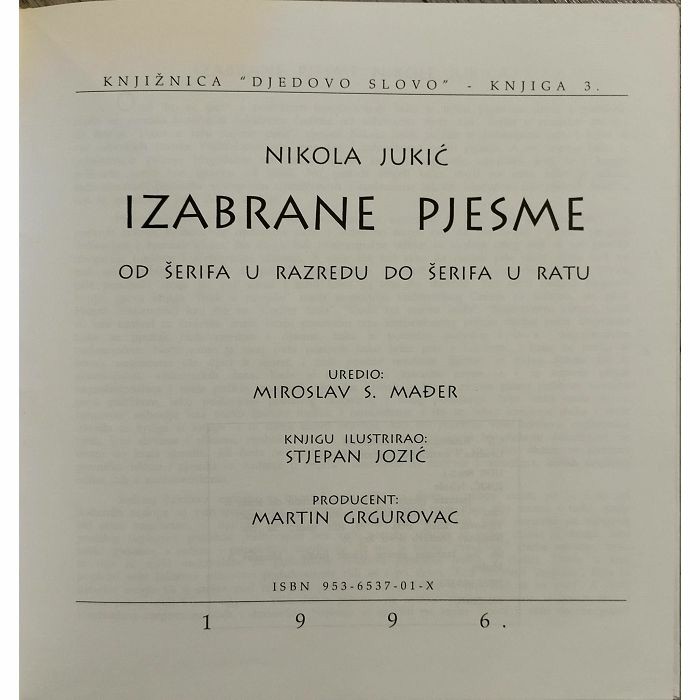 Izabrane pjesme: od šerifa u razredu do šerifa u ratu Nikola Jukić