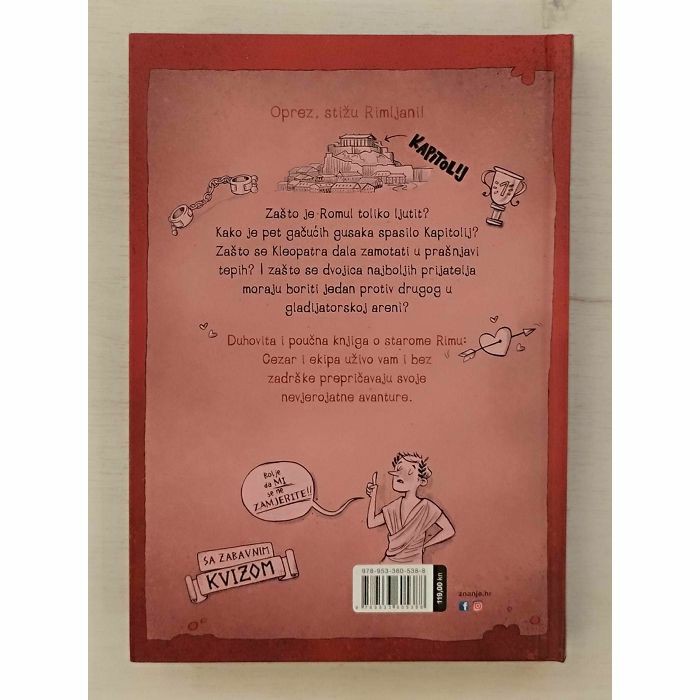 Duhovita i poučna knjiga o starome Rimu: Cezar i ekipa s Kapitolija prepričavaju svoje nevjerojatne avanture. Djeca će uz obilje povijesnih i zabavnih činjenica saznati i odgovore na pitanja: