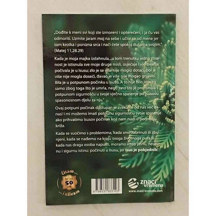 Ovaj potpuni počinak dostupan je svakome od nas već danas! I mi možemo imati potpunu sigurnost u svoje spasenje ako prihvatimo Isusov počinak koji nam nudi u podnožju križa. Kada se suočimo s problemima, kada smo zabrinuti ili zbunjeni, kada se nađemo na kraju svojega životnog puta ili kada nas draga osoba napusti, moramo imati jasnu, neupitnu i sigurnu istinu koja kaže: počinite u Isusu jer Isus je pobjednik!