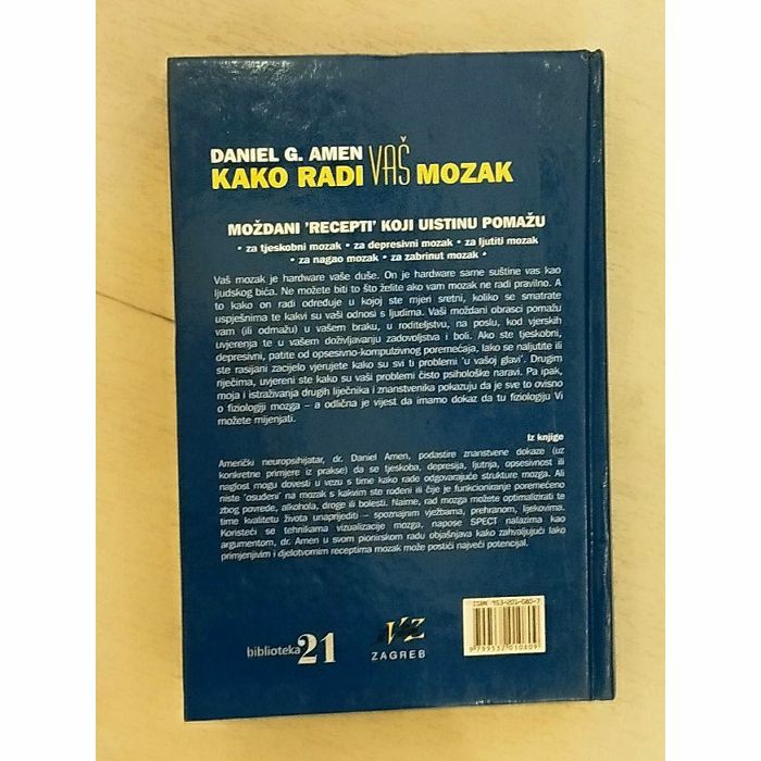 Američki neuropsihijatar primjenom SPECTpretrage (jednofotonske emisijske kompjutorizirane tomografije) daje dijagnostički prikaz fiziologije rada mozga. Ovaj pionirski rad na popularan i zanimljiv način podastire znanstvene dokaze (uz konkretne primjere iz prakse) da se tjeskoba, depresija, ljutnja, opsesivnost ili naglost mogu dovesti u vezu s radom odgovarajućih struktura mozga. Funkcioniranje mozga može biti poremećeno zbog povrede, alkohola, droge ili bolesti, a rad mozga moguće je optimalizirati i tako unaprijediti kvalitetu života psihoterapijom, spoznajnim vježbama, prehranom i lijekovima.