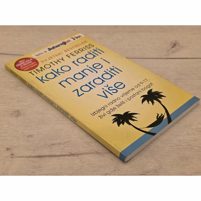 KAKO RADITI MANJE I ZARADITI VIŠE Timothy Ferriss Kako izbjeći radno vrijeme od 9 do 5, živjeti gdje vam srce želi i pridružiti se novim bogatašima.Radi se o izdanju koje sadrži najzanimljivije dijelove njegovog svjetskog bestselera "Četverosatni radni tjedan" (izvorno The 4-Hour Work Week).NAPOMENA: RIJEDAK PRIMJERAKDimenzije 18 x 11 cm