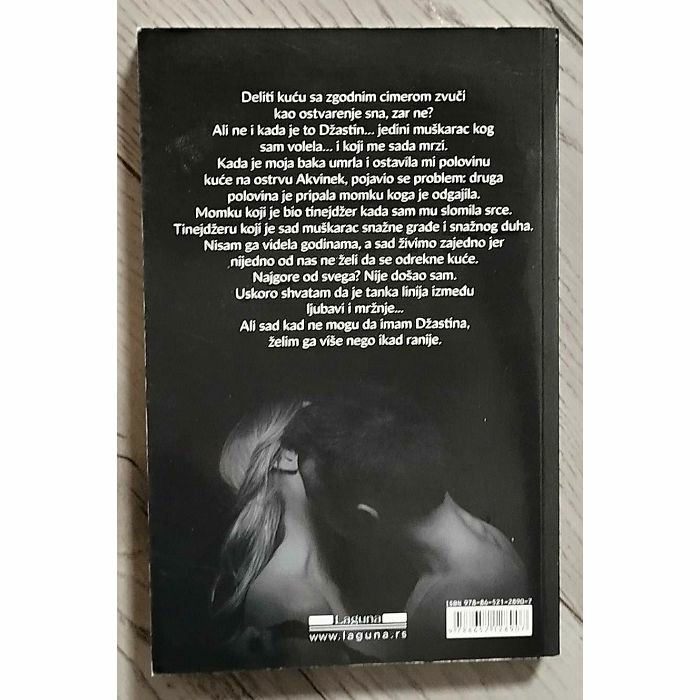 Mnogo puta sam pokušao da te mrzim, ali čak ni tad nisam prestao da te volim. Deliti kuću sa zgodnim cimerom zvuči kao ostvarenje sna, zar ne? Ali ne i kada je to Džastin… jedini muškarac kog sam volela… i koji me sada mrzi. Kada je moja baka umrla i ostavila mi polovinu kuće na ostrvu Akvinek, pojavio se problem: druga polovina je pripala momku koga je odgajila. Momku koji je bio tinejdžer kada sam mu slomila srce. Tinejdžeru koji je sad muškarac snažne građe i snažnog duha. Nisam ga videla godinama, a sad živimo zajedno jer nijedno od nas ne želi da se odrekne kuće. Najgore od svega? Nije došao sam. Uskoro shvatam da je tanka linija između ljubavi i mržnje... Ali sad kad ne mogu da imam Džastina, želim ga više nego ikad ranije.