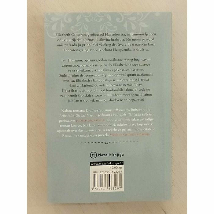 Judith McNaught donosi nam još jedan uzbudljiv roman koji će, baš kao i prethodnici, oduševiti sve koji su već upoznali ovu slavnu autoricu, a zacijelo će privući i nove čitatelje. Nakon romana Kraljevstvo snova, Whitney, ljubavi moja, Prije tebe, Jednom i zauvijek i Nešto prekrasno Judith McNaught donosi nam još jedan uzbudljiv roman koji će, baš kao i prethodnici, oduševiti sve koji su već upoznali ovu slavnu autoricu, a zacijelo će privući i nove čitatelje.