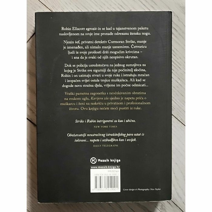 Karijera zla – džepno izdanje je treći roman iz serije kriminalističkih romana s detektivom Cormoranom Strikeom slavne J.K. Rowling, autorice legendarnog Harryja Pottera.