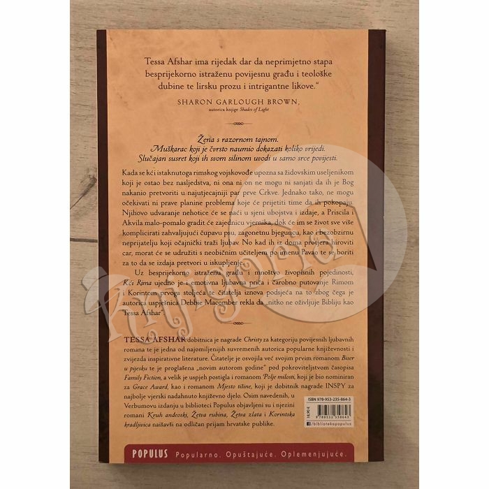 Uz besprijekorno istraženu građu i mnoštvo živopisnih pojedinosti, Kći Rima ujedno je i emotivna ljubavna priča i čarobno putovanje Rimom i Korintom prvoga stoljeća te čitatelja iznova podsjeća na to zbog čega je autorica uspješnica Debbie Macomber rekla da „nitko ne oživljuje Bibliju kao Tessa Afshar“.