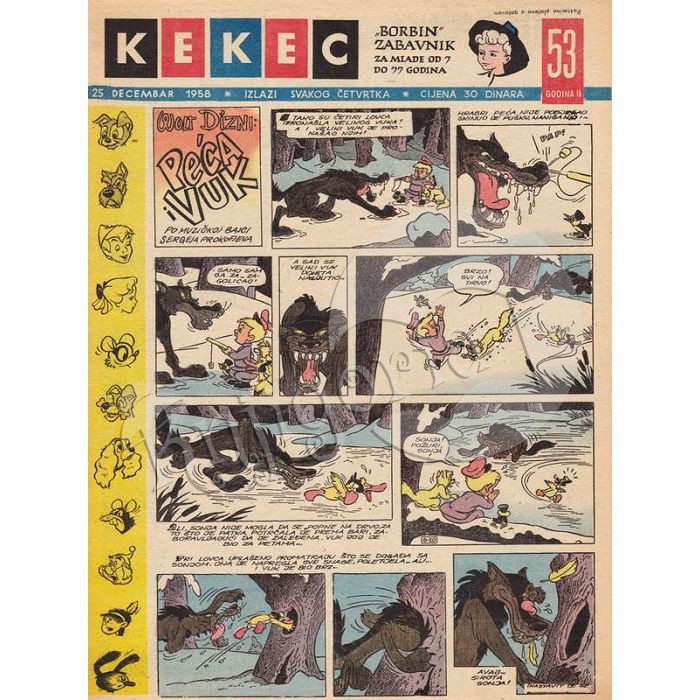 53 časopisa Kekec u rasponu od 1957-1958. Svaki časopis ima od 16-24 stranice Uvezano tvrdim koricama.