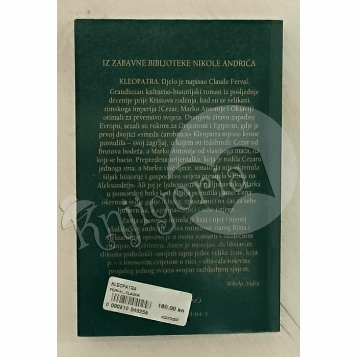 Zmija otrovnica učinila je kraj i njoj i njenoj vladalačkoj ambiciji. – Sva intimnost starog Rima i Aleksandrije opisana je u ovom romanu sneobičnim znanjem i vještinom. Autor je nastojao, da blistavim slikama psihološki osvijetli tajnu jedne velike žene, koja je – s lotosovim cvijetom u ruci – obasjala ruševine propalog jednog svijeta svojim razbludnim sjajem. Djelo je napisao Claude Ferval .