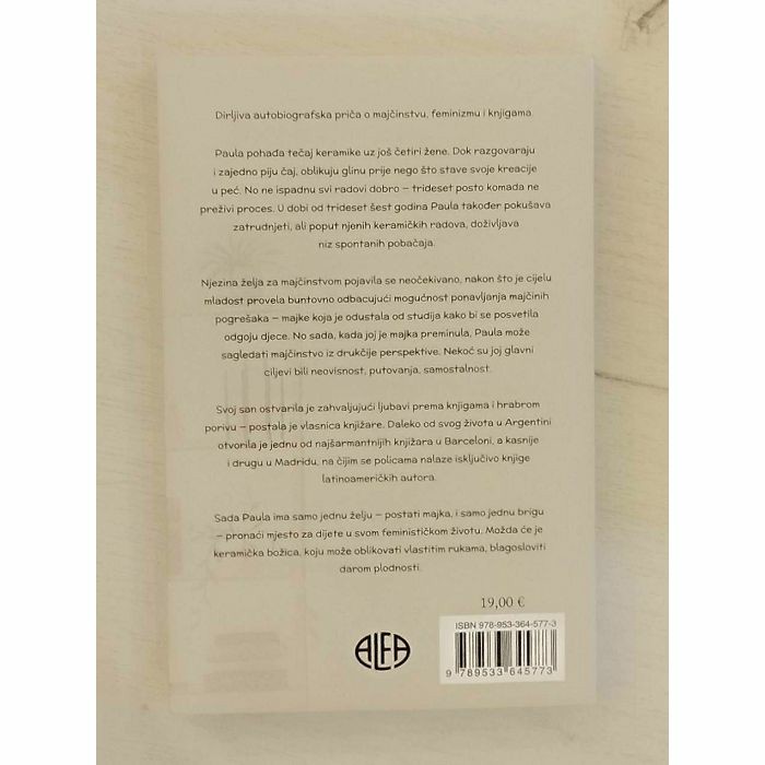 Dirljiva autobiografska priča o majčinstvu, feminizmu i knjigama. Paula pohađa tečaj keramike uz još četiri žene. Dok razgovaraju i zajedno piju čaj, oblikuju glinu prije nego što stave svoje kreacije peć. No ne ispadnu svi radovi dobro — trideset posto komada ne preživi proces. U dobi od trideset šest godina Paula također pokušava zatrudnjeti, ali poput njenih keramičkih radova, doživljava niz spontanih pobačaja. Njezina želja za majčinstvom pojavila se neočekivano, nakon što je cijelu mladost provela buntovno odbacujući mogućnost ponavljanja majčinih pogrešaka — majke koja je odustala od studija kako bi se posvetila odgoju djece. No sada, kada joj je majka preminula, Paula može sagledati majčinstvo iz drukčije perspektive. Nekoć su joj glavni ciljevi bili neovisnost, putovanja, samostalnost. Svoj san ostvarila je zahvaljujući ljubavi prema knjigama i hrabrom porivu — postala je vlasnica knjižare. Daleko od svog života u Argentini otvorila je jednu od najšarmantnijih knjižara u Barceloni, a kasnije i drugu u Madridu, na čijim se policama nalaze isključivo knjige latinoameričkih autora. Sada Paula ima samo jednu želju — postati majka, i samo jednu brigu — pronaći mjesto za dijete u svom feminističkom životu. Možda će je keramička božica, koju može oblikovati vlastitim rukama, blagosloviti darom plodnosti.