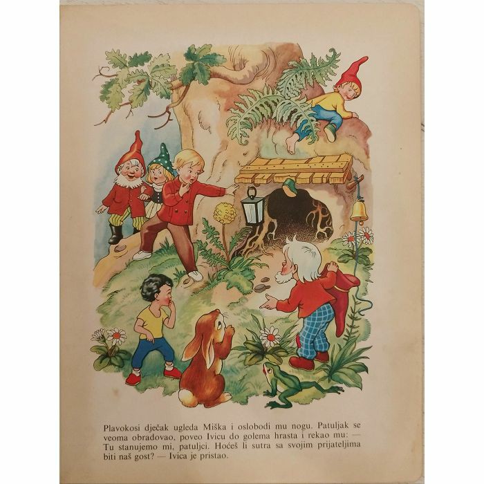 Plavokosi dječak ugleda Miška i oslobodi mu nogu. Patuljak se veoma obradovao, poveo Ivicu do golema hrasta i rekao mu: Tu stanujemo mi, patuljci. Hoćeš li sutra sa svojim prijateljima biti naš gost? Ivica je pristao...