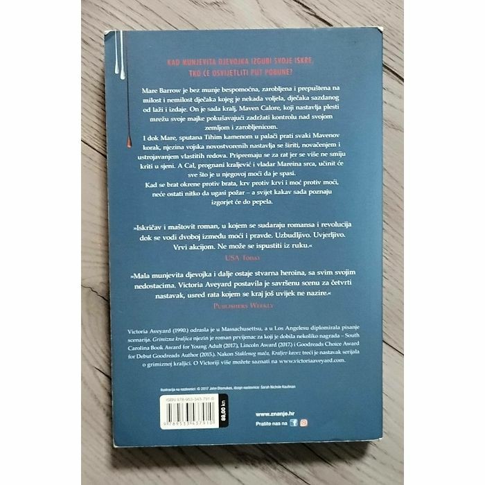 Mare Barrow je zarobljena, bespomoćna bez munje i prepuštena na milost i nemilost dječaka kojeg je nekada voljela, dječaka sazdanog od laži i izdaje. On je sada je kralj, Maven Calore, koji nastavlja plesti mrežu svoje majke, pokušavajući zadržati kontrolu nad svojom zemljom—i zarobljenicom. I dok Mare, sputana Tihim kamenom u palači prati svaki Mavenov korak, njezina vojska novostvorenih nastavlja se širiti, novačenjem i ustrojavanjem vlastitih redova. Pripremaju se za rat, jer se više ne smiju kriti u sjeni. A Cal, prognani kraljević i vladar Mareinog srca, učinit će sve što je u njegovoj moći da je spasi. Kad se brat okrene protiv brata, krv protiv krvi i sposobnost protiv sposobnosti, neće ostati nitko da ugasi požar – i svijet kakav sada poznaju izgorjet će do dna.