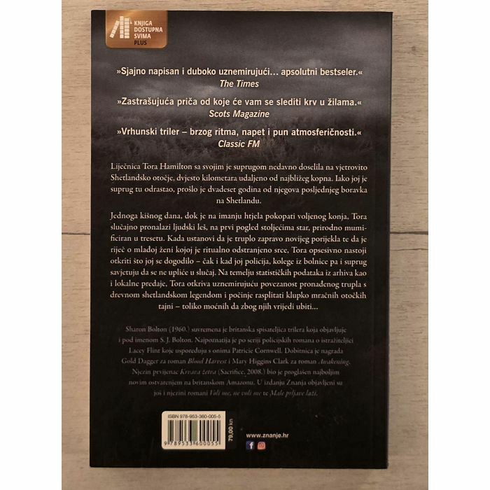 Liječnica, specijalistica ginekologije i porodništva, Tora Hamilton sa svojim je suprugom nedavno doselila na vjetrovito Shetlandsko otočje, dvjesto kilometara udaljeno od najbližeg kopna. Premda joj je suprug tu odrastao, prošlo je dvadeset godina od njegova posljednjeg boravka na Shetlandu. Dok je jednoga kišnog dana htjela pokopati voljenog konja, Tora slučajno pronalazi ljudski leš, na prvi pogled stoljećima star, prirodno mumificiran u tresetu. Kada ustanovi da truplo zapravo nije staro te da je riječ o mlađoj ženi, kojoj je ritualno odstranjeno srce, Tora opsesivno nastoji otkriti što joj se dogodilo – čak i kad joj policija, kolege iz bolnice pa i suprug savjetuju da se ne se upliće u slučaj. Na temelju statističkih podataka iz bolnice, gradskog arhiva kao i lokalne predaje, Tora otkriva uznemirujuću povezanost pronađenog trupla s drevnom shetlandskom legendom i počinje rasplitati klupko mračnih otočkih tajni – toliko moćnih da radi njih vrijedi ubiti.