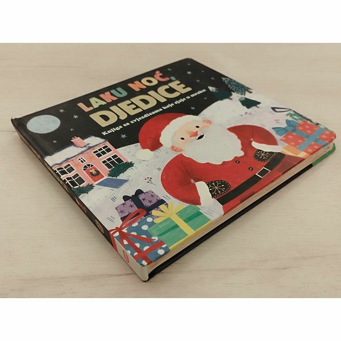 Vaše će se dijete rado pridružiti Djedu Mrazu dok dostavlja darove u ovoj božićnoj uspavanki. Kad su darovi dostavljeni, „napunite” zvjezdice, ugasite svjetlo i zajedno gledajte kako sjaje u mraku.