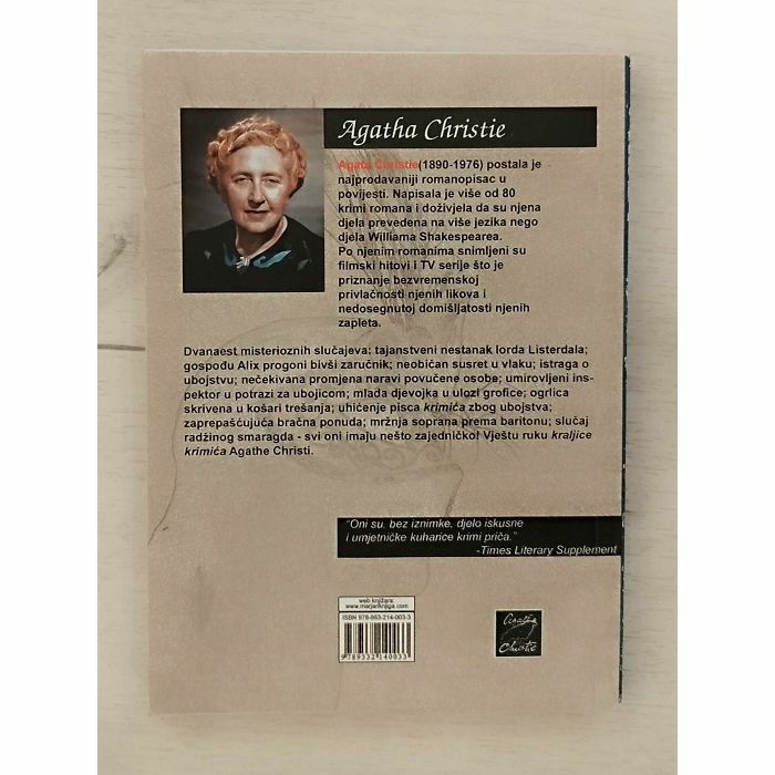 Dvanaest misterioznih slučajeva: Tajanstveni nestanak lorda Listerdalea; gospođu Alix progoni bivši zaručnik; neobični susret u vlaku; istraga o ubojstvu; neočekivana promjena naravi povučene osobe; umirovljeni inspektor u potjeri za ubojicom; mlada djevojka u ulozi grofice; ogrlica skrivena u košari trešanja; uhićenje pisca krimića zbog ubojstva; zaprepašćujuća bračna ponuda; mržnja soprana prema baritonu i slučaj radžinog smaragda – svi oni imaju nešto zajedničko! Vještu ruku kraljice krimića Agathe Christie.