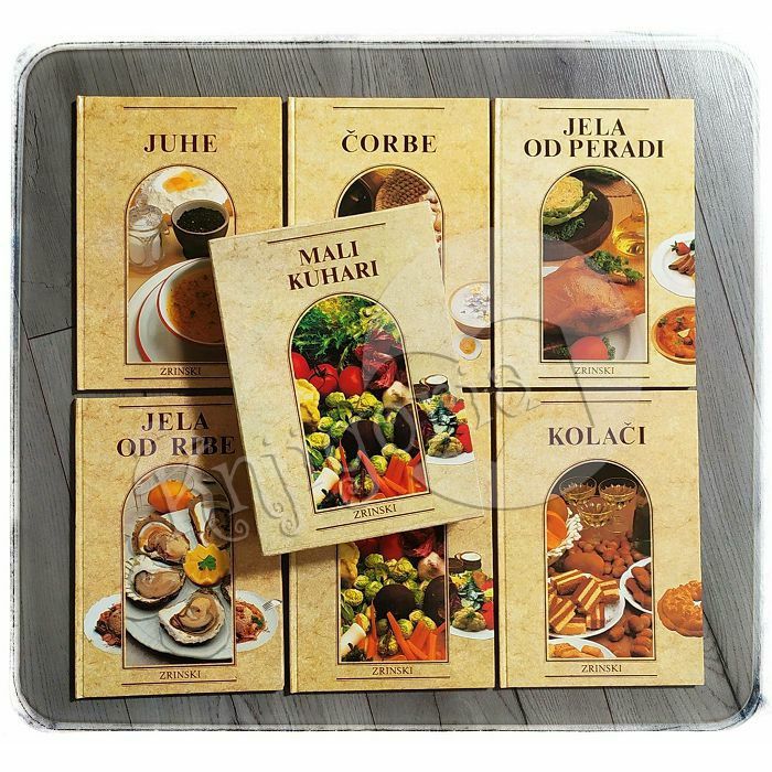 Mali kuhari 1-6 + kutija Komplet kuharica u zaštitnoj kutiji:- Jela od ribe - Kolači - Čorbe - Juhe - Jela od peradi - Salate