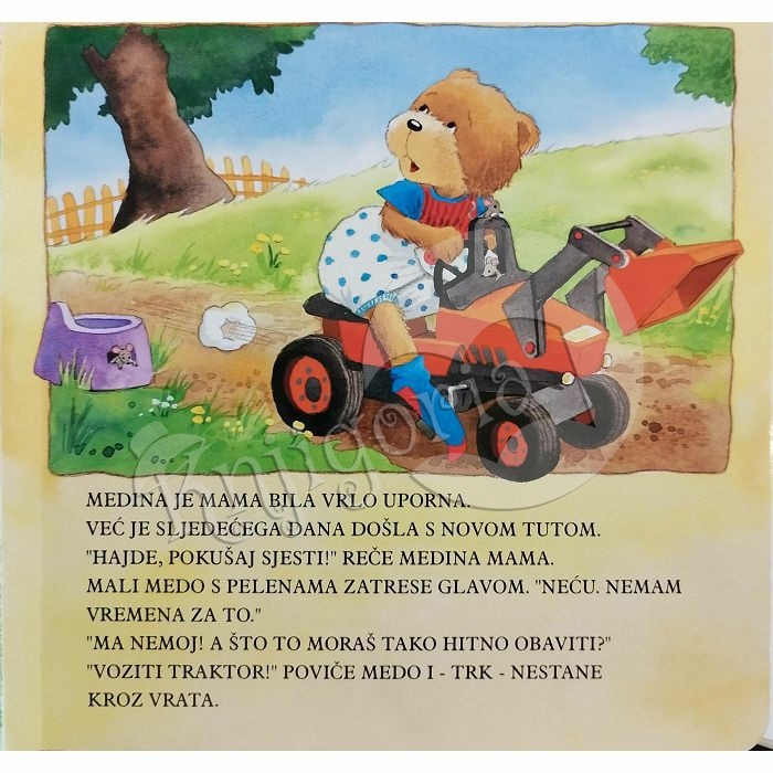 Mali medo jednostavno ne želi ići na tutu. Svaki put izmisli novi izgovor. No jednoga dana pojavila se mala medvjeđa djevojčica - bez pelena. Ona naime već ide u dječji vrtić. Sad i mali medo želi ići u vrtić. Hoće li se ipak nekako odlučiti sjesti na tutu?
