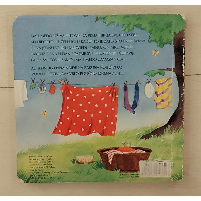 MALI MEDO UŽIVA U TOME DA PRLJA I BRLJA SVE OKO SEBE. ALI NIPOŠTO NE ŽELI UĆI U KADU. TO JE ZATO ŠTO PRED SVIMA ČUVA JEDNU VELIKU MEDVJEDU TAJNU: ON MRZI VODU! TAKO IZ DANA U DAN POSTAJE SVE NEUREDNIJI I ČUPAVIJI, PA GA SVI ZOVU SAMO «MALI MEDO ZAMAZANKO». ALI JEDNOG DANA NAIĐE NA RAKUNA KOJI ŽIVI UZ VODU I DOŽIVLJAVA VRLO POUČNO IZNENAĐENJE.