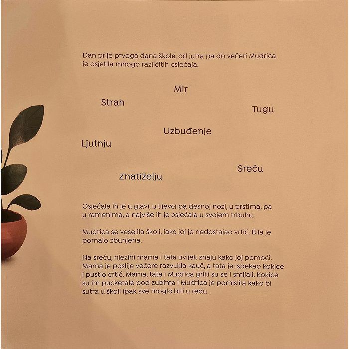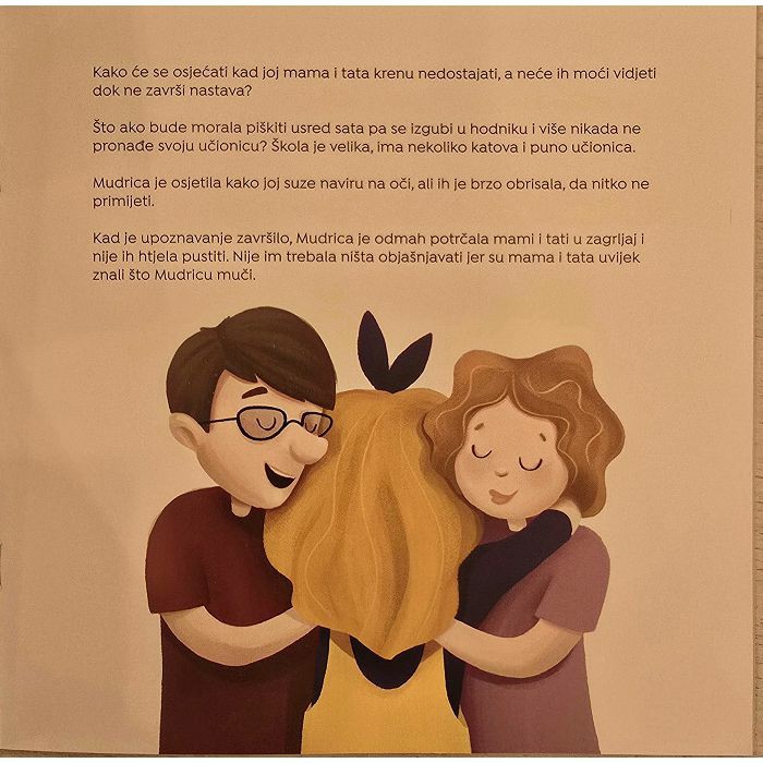 Upoznaj djevojčicu Muarios koja je nedavno krenula u prvi razred. Mudrica se baš kacira svijetu voli igrati, pa se bila malo uplašila kako će njezini anni izgledati sada kada će u školi trebati sjediti mirno, biti tiho, slušati i dignuti ruku ako želi nešto reći. Bila se malo zabrinula da više neće imati vremena za igru i da bi joj mogli nedostajati njezini roditelji. No uz pomoć mame, tate, učiteljice i novih prijatelja iz razreda, Mudrica je shvatila da je škola jako lijepo i sigurno mjesto te da u školi itekako ima vremena za igranje, crtanje, stvaranje i maštanje i da se puno toga može naučiti i kroz igru. Jednu takvu zanimljivu igru koja se zove „Nevidljivi balon" Mudrica predlaže i za tebe i tvoje prijatelje u razredu. Zato brže-bolje zamoli mamu ili tatu da ti pročitaju ovu priču i neka ti školski dani budu ispunjeni veseljem i stvaranjem lijepih uspomenal