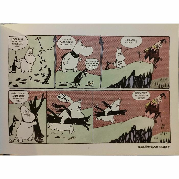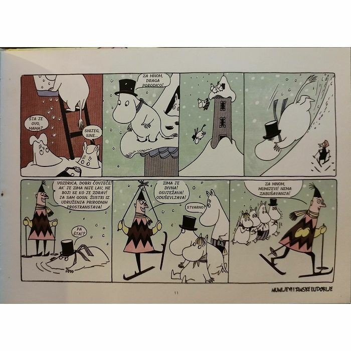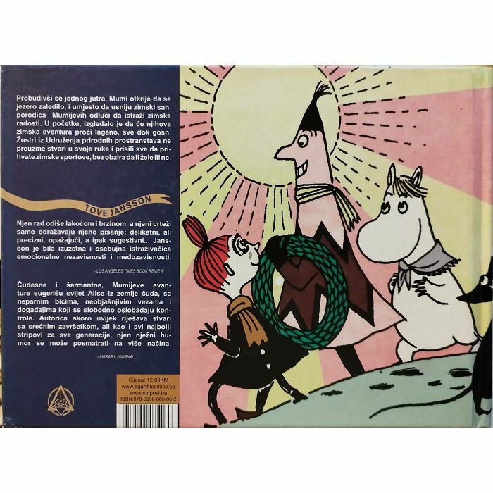 Probudivši se jednog jutra, Mumi otkrije da se jezero zaledilo, i umjesto da utonu u zimski san porodica Mumijevih odluči istražiti zimske radosti. U početku, izgledalo je da će njihova zimska avantura proći lagano, sve dok se gosn. Žustri iz Udruženja prirodnih prostranstava ne preuzme stvari u svoje ruke i prisili sve da prihvate zimske sportove, bez obzira željeli oni to ili ne