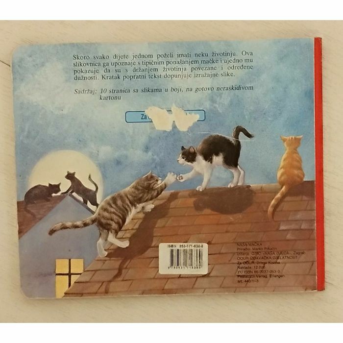 Skoro svako dijete jednom poželi imati neku životinju. Ova slikovnica upoznat će dijete s držanjem životinja i određene dužnosti oko mačke. Kratki popratni tekst dopunjuju izražajne slike. Prigodno za djecu vrtićke dobi.