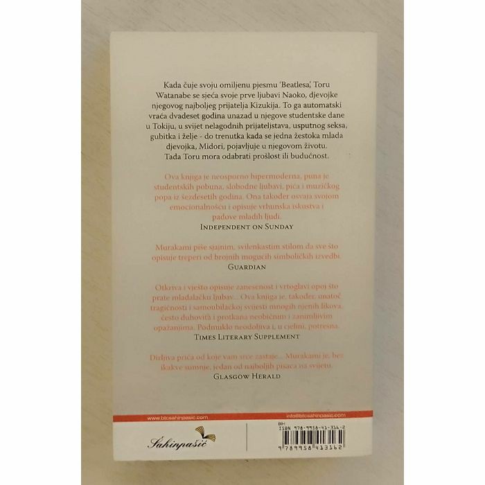 Čuvši pjesmu Beatlesa, Toru Vatanabe sjeti se svoje prve ljubavi Naoko, djevojke svoga najboljeg prijatelja Kizukija. Istoga časa u mislima se vraća u prošlost, kad je prije gotovo dvadeset godina u Tokiju provodio studentske dane, izgubljen u svijetu tjeskobnih prijateljstava, usputnog seksa, strasti, gubitaka i žudnje — u vrijeme kad je u njegov život umarširala neobuzdana mlada žena po imenu Midori, i on je morao birati između budućnosti i prošlosti.