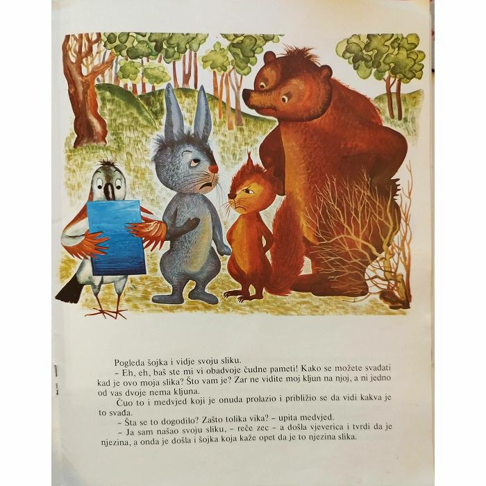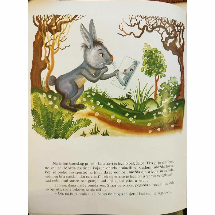 Na ledini šumskog proplanka u travi je ležalo ogledalce. Tko ga je izgubio, ne zna se. Možda pastirica koja je onuda prolazila sa stadom, možda lovac koji se ondje bio spustio na travu da se odmori, možda djeca koja su onuda jednom bila naišla - tko će znati? Tek ogledalce je ležalo i u njemu se ogledalo sad nebo, sad sunce, sad granje, sad oblak, sad ptica u letu... Jednog dana naide onuda zec. Spazi ogledalce, pogleda u njega i ugleda svoje uši, svoje brkove, svoje oči... - Oh, pa to je moja slika! Samo ne mogu se sjetiti kad sam je izgubio...