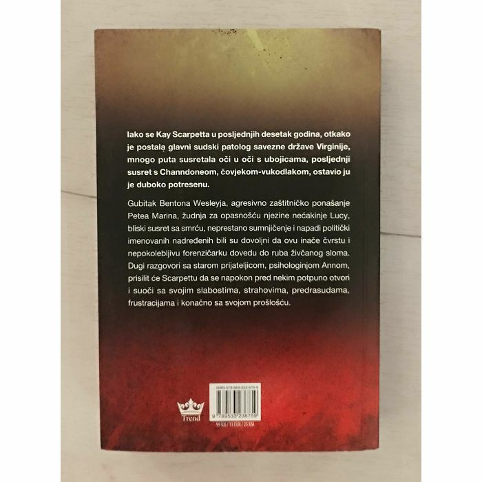 Iako se Kay Scarpetta u posljednjih desetak godina, otkako je postala glavni sudski patolog savezne države Virginije, mnogo puta susretala oči u oči s ubojicama, posljednji susret s Channdoneom, čovjekom-vukodlakom, ostavio ju je duboko potresenu. Gubitak Bentona Wesleyja, agresivno zaštitničko ponašanje Petea Marina, žudnja za opasnošću njezine nećakinje Lucy, bliski susret sa smrću, neprestano sumnjičenje i napadi politički imenovanih nadređenih bili su dovoljni da ovu inače čvrstu i nepokolebljivu forenzičarku dovedu do ruba živčanog sloma. Dugi razgovori sa starom prijateljicom, psihologinjom Annom, prisilit će Scarpettu da se napokon pred nekim potpuno otvori i suoči sa svojim slabostima, strahovima, predrasudama, frustracijama i konačno sa svojom prošlošću.