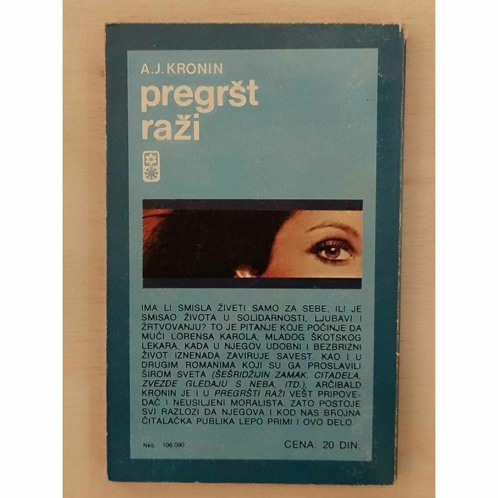 IMA LI SMISLA ŽIVETI SAMO ZA SEBE, ILI JE SMISAO ŽIVOTA U SOLIDARNOSTI, LJUBAVI I ŽRTVOVANJU? TO JE PITANJE KOJE POČINJE DA MUČI LORENSA KAROLA, MLADOG ŠKOTSKOG LEKARA, KADA U NJEGOV UDOBNI I BEZBRIŽNI ŽIVOT IZNENADA ZAVIRUJE SAVEST. KAO I U DRUGIM ROMANIMA KOJI SU GA PROSLAVILI ŠIROM SVETA (ŠEŠRIDŽIJIN ZAMAK, CITADELA. ZVEZDE GLEDAJU S NEBA, ITD.), ARČIBALD KRONIN JE I U PREGRŠTI RAŽI VEST PRIPOVE-DAČ I NEUSILJENI MORALISTA. ZATO POSTOJE SVI RAZLOZI DA NJEGOVA I KOD NAS BROJNA ČITALAČKA PUBLIKA LEPO PRIMI I OVO DELO.